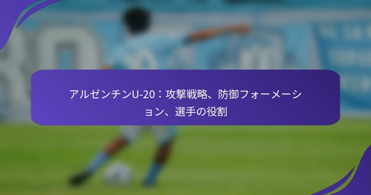 アルゼンチンU-20チームは、迅速なボール移動と戦略的なポジショニングに焦点を当てたダイナミックな攻撃アプローチを採用し、得点機会を創出しています。彼らの戦略は、フォーメーションの組み合わせ、ウィンガーの効果的な活用、セットプレー戦術を含み、ネットを揺らすチャンスを最大化します。