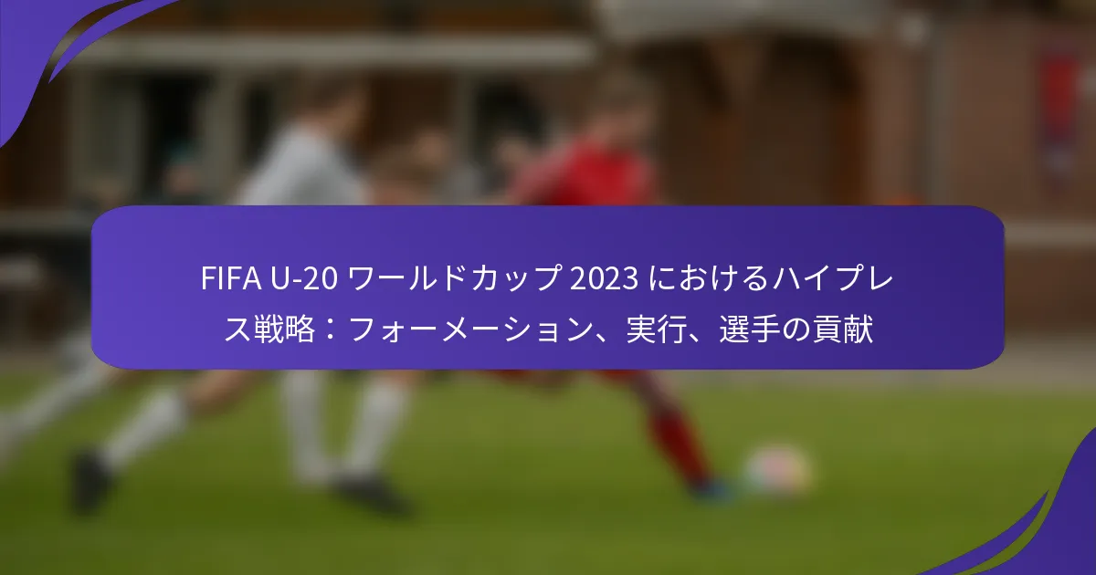 2023年FIFA U-20ワールドカップでは、ハイプレス戦略に対して卓越した貢献を示した選手が何人かいます。彼らのパフォーマンスは、得点機会を生み出す上でのプレスの効果を強調しています。