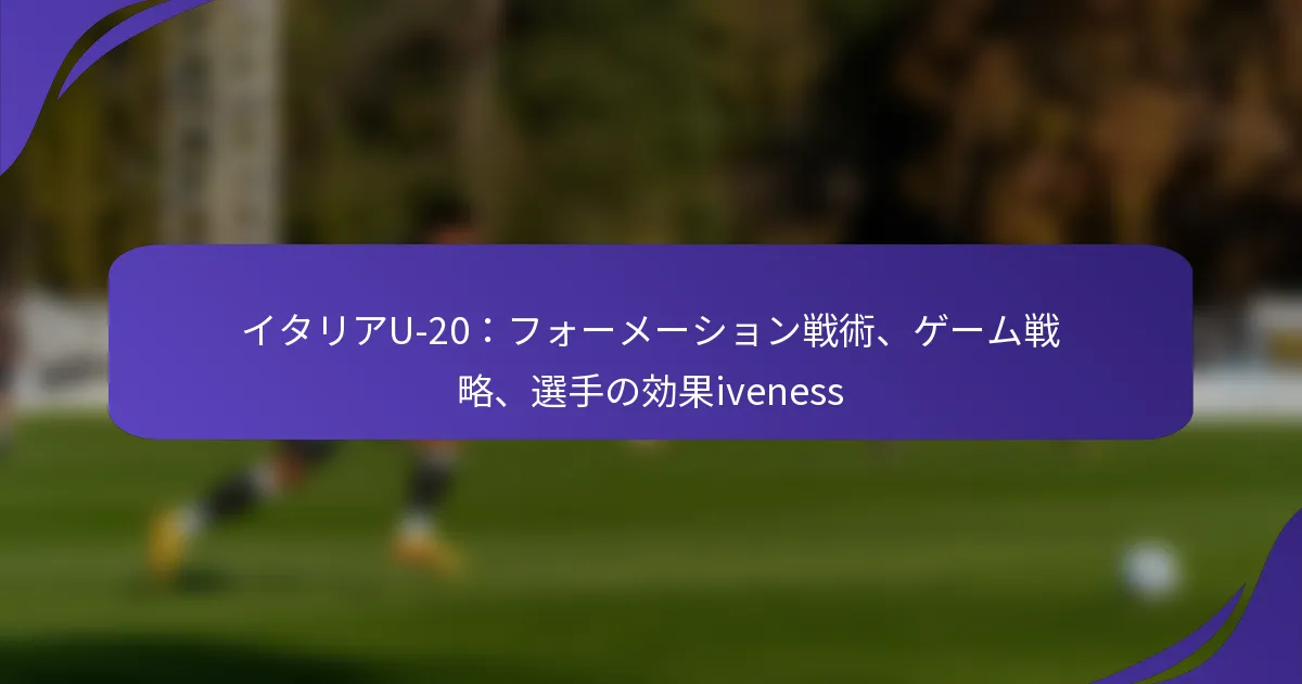 イタリアU-20チームにおける個々の選手の効果は、全体的なパフォーマンスと成功にとって重要です。各選手の貢献は、統計的および戦術的に、チームのダイナミクスや競技結果に大きな影響を与えます。