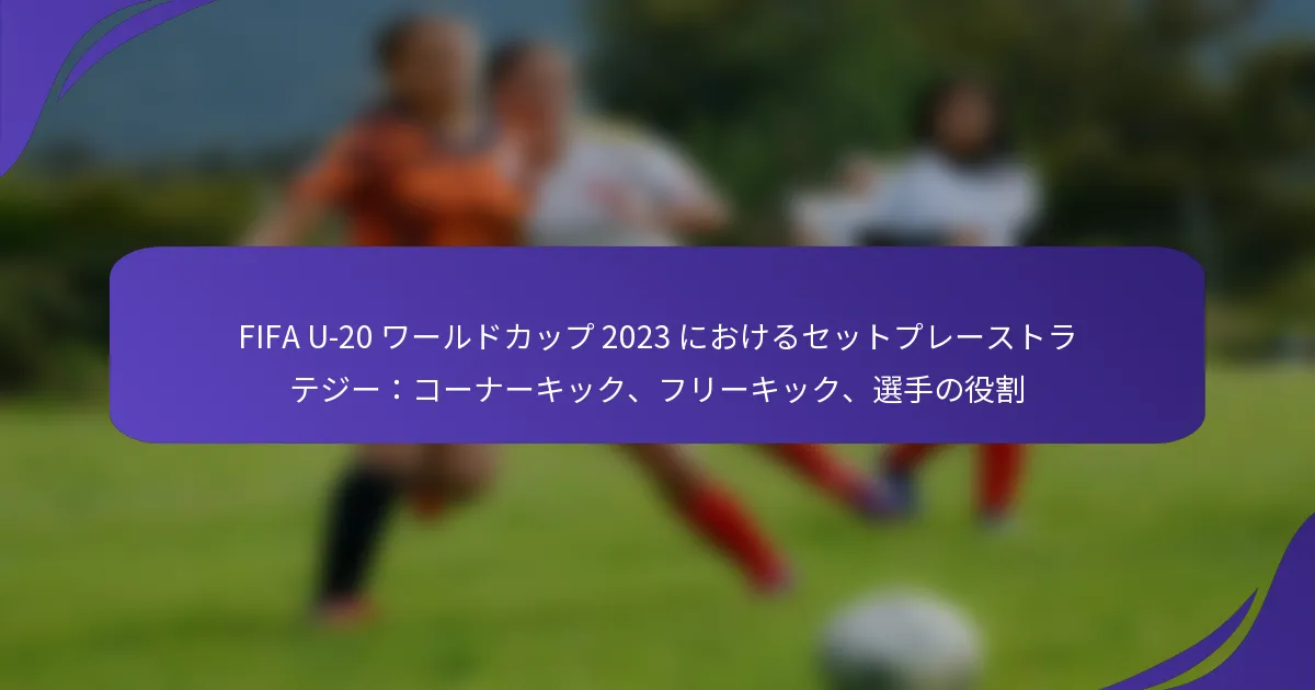 2023年FIFA U-20ワールドカップにおけるセットプレー戦略は、得点機会を生み出し、試合の結果に影響を与える上で重要です。チームはコーナーキックやフリーキックに対してさまざまな戦術を採用し、選手の役割やフォーメーションに焦点を当ててその効果を最大化します。