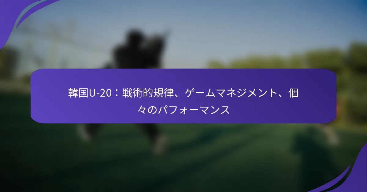 韓国U-20チームの戦術的規律は、構造化されたフォーメーション、明確な選手の役割、効果的なゲームマネジメントによって特徴づけられます。この規律は、試合中にパフォーマンスと適応力を最大化する戦略を実行する能力を高めます。