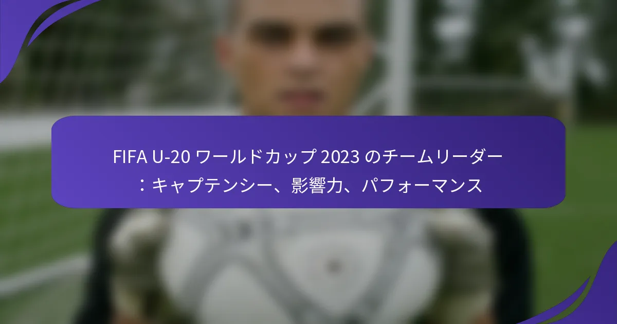 FIFA U-20ワールドカップ2023のキャプテンは、印象的なパフォーマンス指標を通じてリーダーシップを示し、チームに大きな影響を与えています。重要な指標には、得点、アシスト、守備の貢献が含まれ、重要な試合におけるキャプテンの多面的な役割を強調しています。