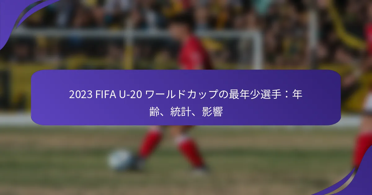 FIFA U-20ワールドカップ2023の最年少選手は、チームへの重要な貢献を示す驚くべき才能を発揮しています。得点、アシスト、全体的な試合への影響は、彼らのパフォーマンスの重要な指標であり、国際舞台での潜在能力を示しています。